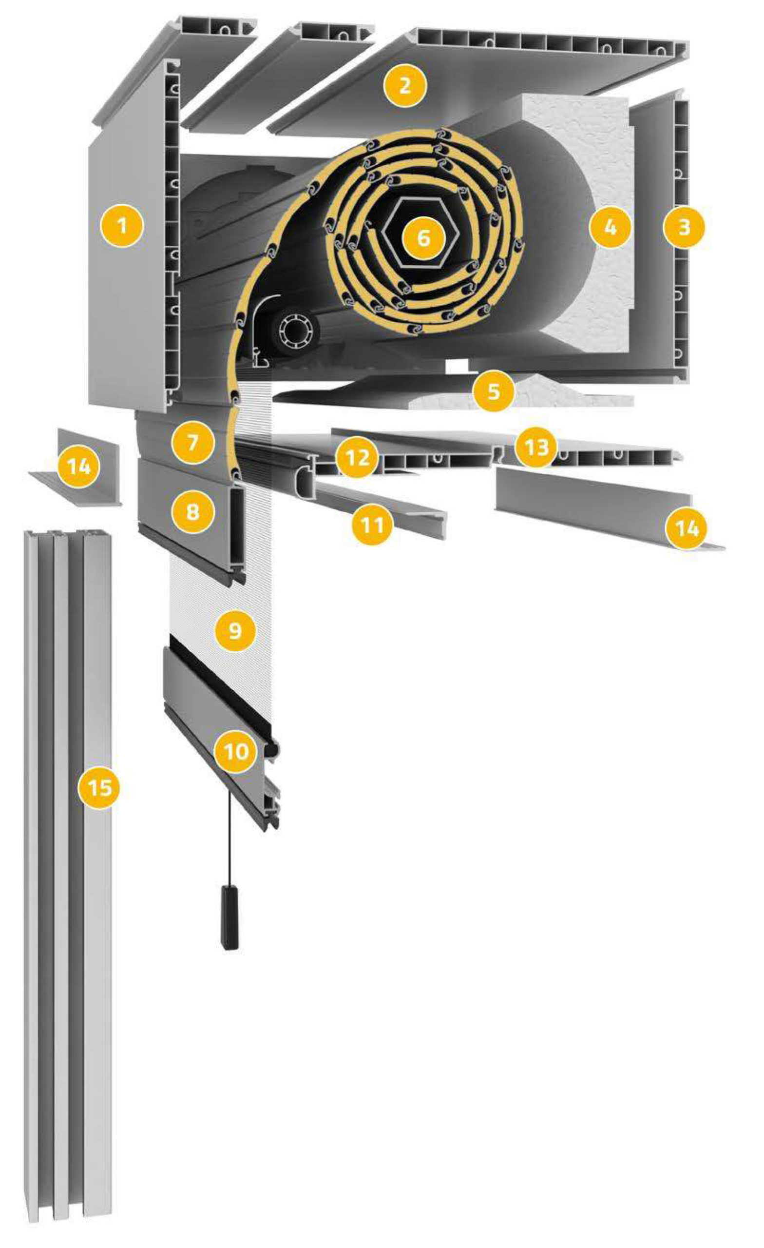 Rozwiązanie zalecane dla okien przesuwnych o dużej grubości ramy oraz gdy wymagany jest łatwy dostęp serwisowy do rolet.