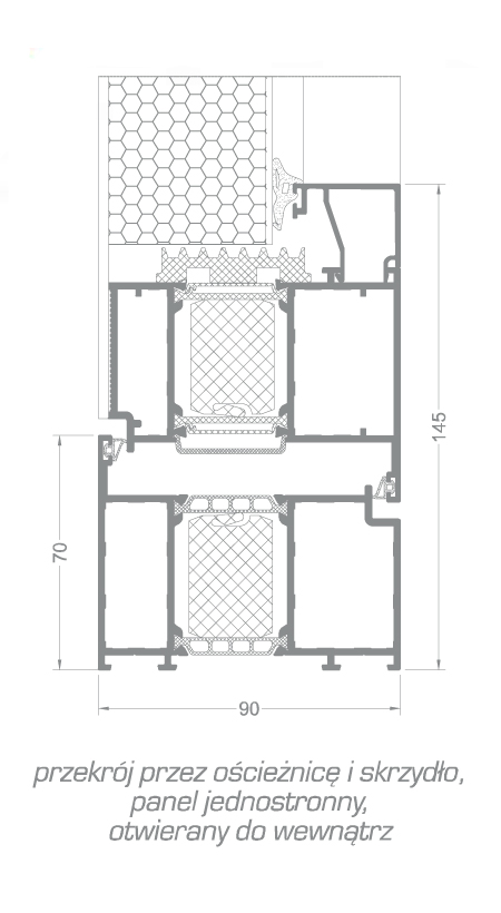 - Jedna płaszczyzna ościeżnicy i naklejanego na skrzydło panelu (panel naklejany od strony zewnętrznej lub obustronny)