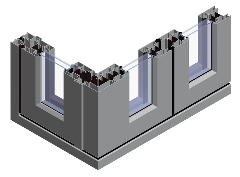 Trójkomorowy system drzwiowy izolowany termicznie przeznaczony do konstruowania drzwi harmonijkowych umożliwiających aranżację szerokich, otwartych przejść.