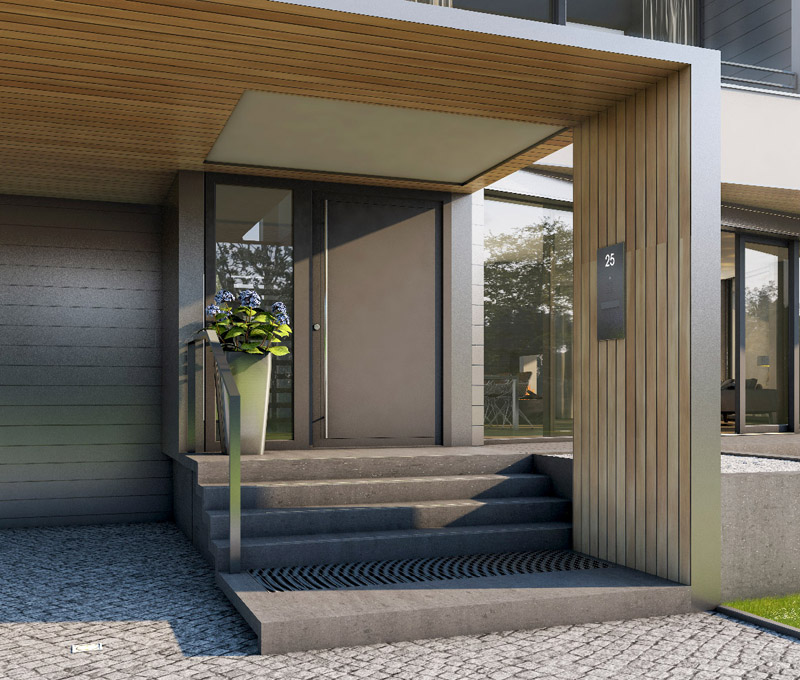 Dzięki najróżniejszym możliwościom wykończeniowym (m.in. wykończenia ze szkła bądź paneli aluminiowych) drzwi Deceuninck doskonale wkomponują się w każdy styl architektoniczny.
